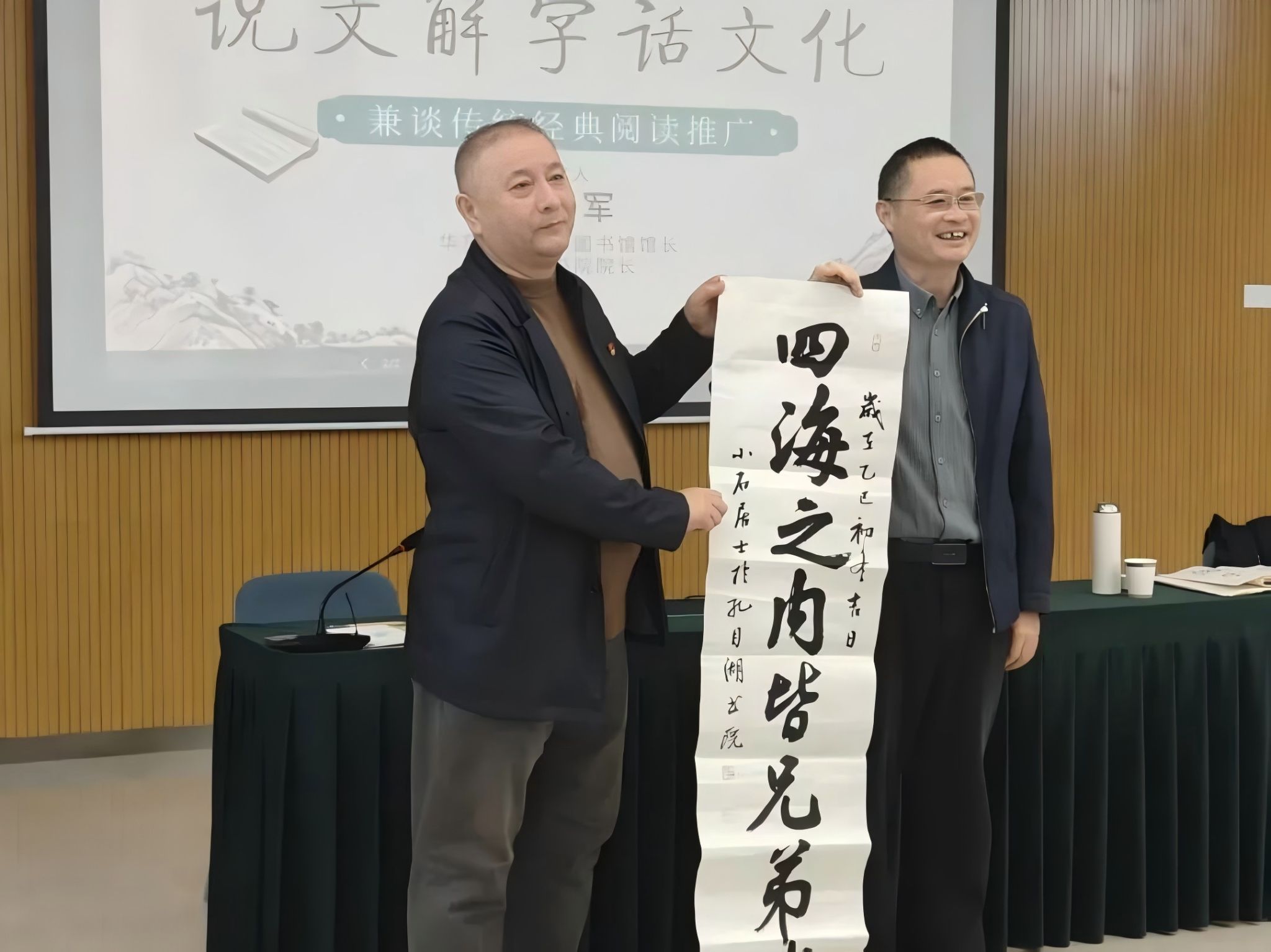 讲座于11月26日举行,石初军以汉字为媒介,围绕“易”“仁”“孝”“忠”“信”等中华传统文化的核心概念,深入阐释了中华文化的精神内核与时代价值。他创新性地提出“经典现代化、理论生活化”的文化传播路径,将传统经典与马克思主义基本原理相结合,赋予传统文化新的时代内涵。