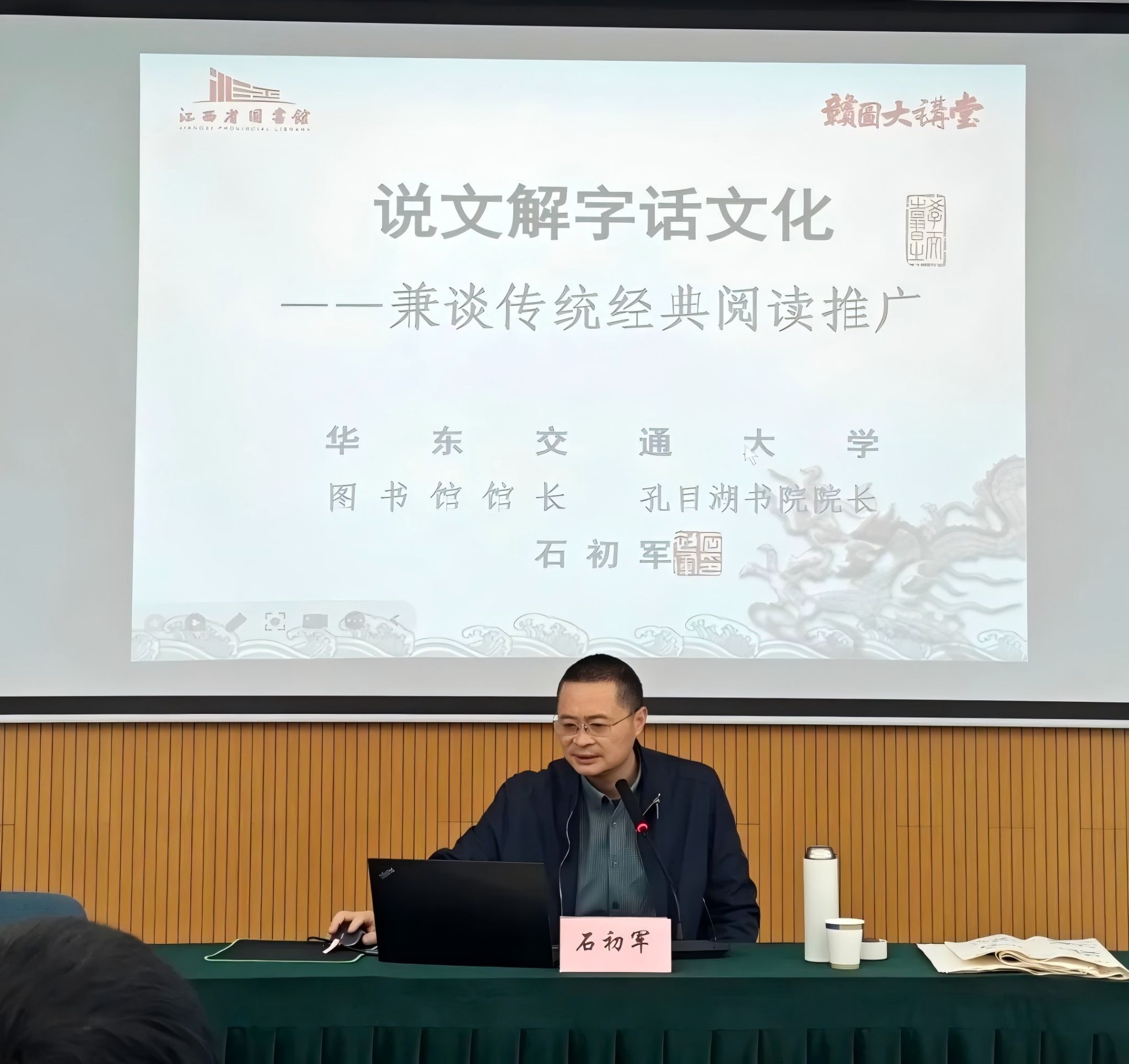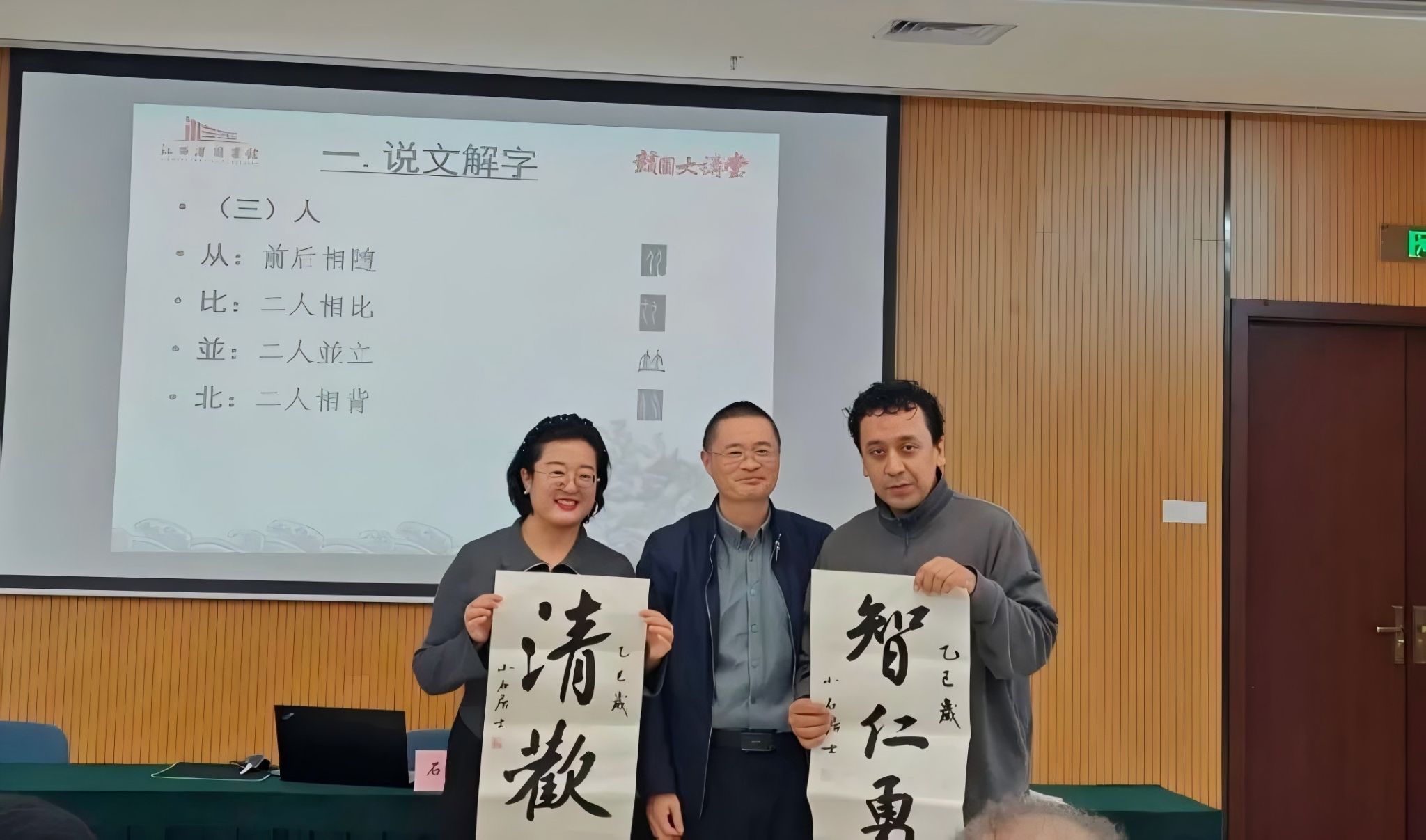 近日,根据“春雨工程”——文化和旅游志愿服务边疆行计划要求,图书馆馆长石初军随江西省图书馆志愿服务团赴新疆维吾尔自治区图书馆,开展了以“赣新文化交融互鉴,共促民族团结发展”为主题的志愿服务活动。活动期间,石初军馆长作了一场题为《说文解字话文化——兼谈中华传统经典阅读推广》的专题讲座,获得了热烈反响。