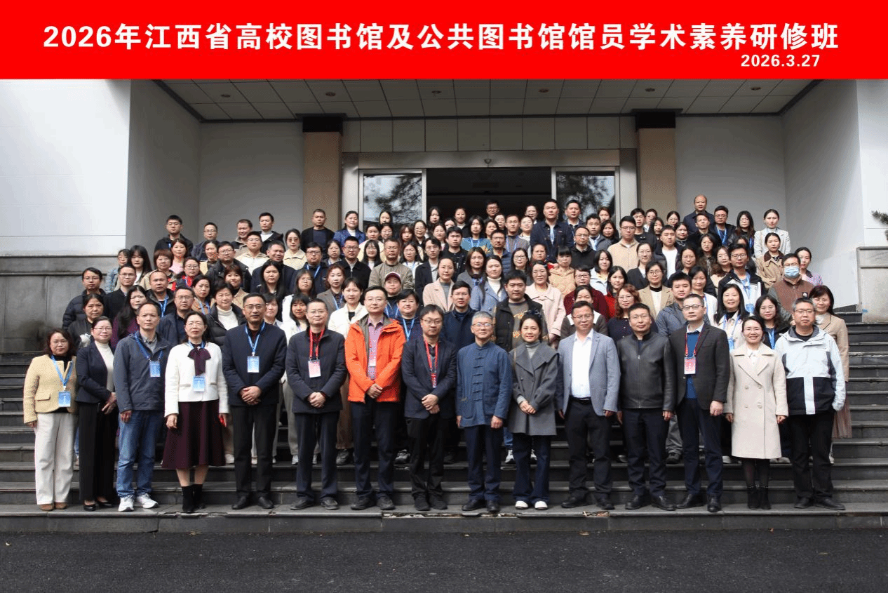 3月27日,由江西省高等学校图书情报工作委员会(以下简称高校图工委)与江西省图书馆学会联合主办、我校图书馆承办的“学术进阶,服务致远——2026江西高校&公共图书馆馆员学术素养研修班”举行。此次研修班旨在全面提升全省图书馆馆员的专业素养、学术能力与服务水平,吸引了来自江西高校及公共图书馆约150名馆员积极参与,反响热烈。